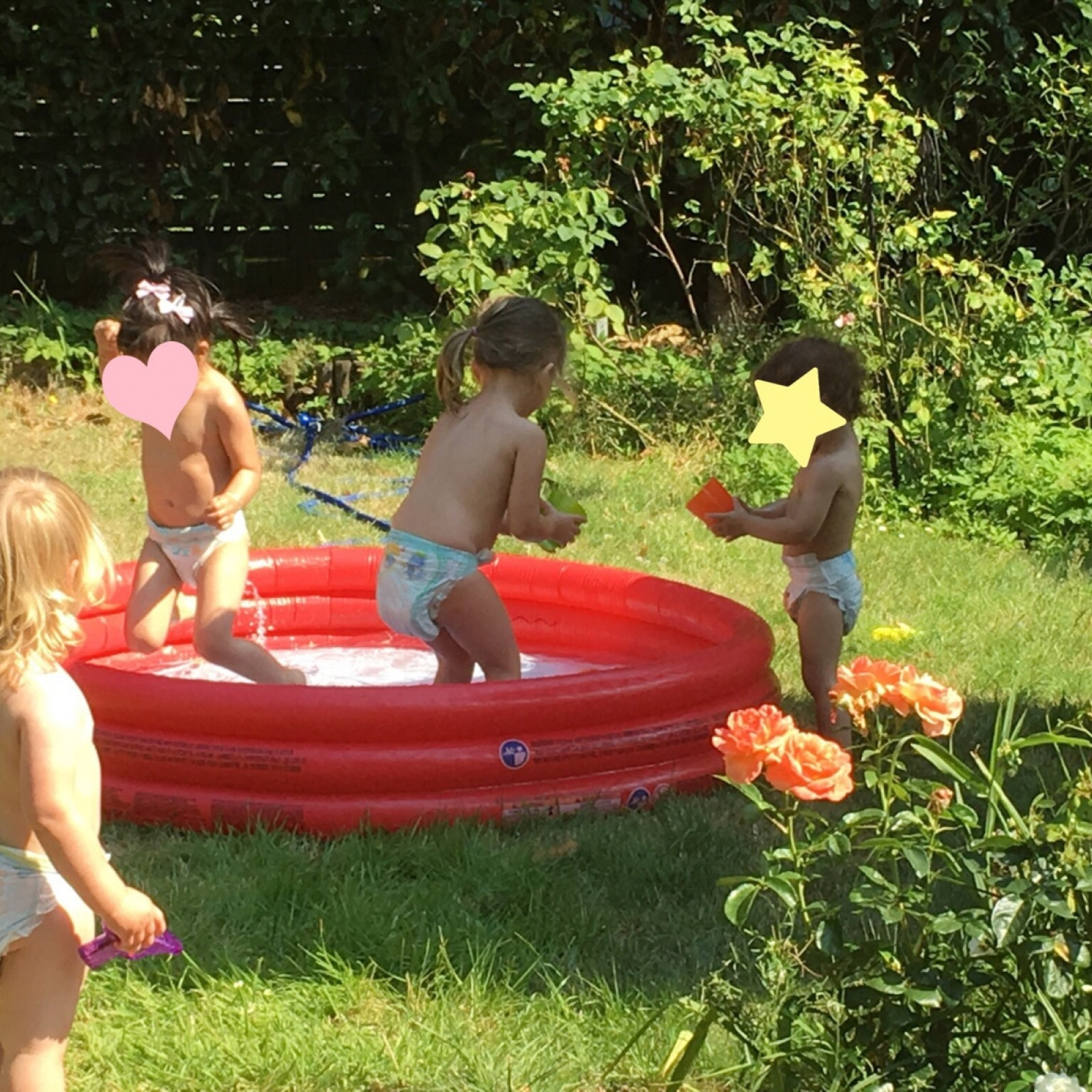 Von dem Tisch aus haben wir ein tollen Blick in unseren Garten. Unser Garten bietet kleinen Entdeckern alles, was ihr Herz begehrt. Selbstverständlich stehen hier Sandkasten und Rutsche zur Verfügung. Wer gerne hüpft, kann sich auf unserem Trampolin austoben. Zudem kann an heißen Tagen im Planschbecken gespielt werden oder im Sand mit Wasser gematscht werden. Doch auch die Entdeckung der Natur kommt nicht zu kurz. Wir züchten zusammen unsere eigenen Tomatenpflanzen, Gurken etc. und ernten und essen sie dann natürlich auch. Wenn die Kinder gesehen haben, wie unser Gemüse oder Obst entsteht, schmeckt es ihnen noch besser und sie sind auch bereit, Unbekanntes zu probieren.